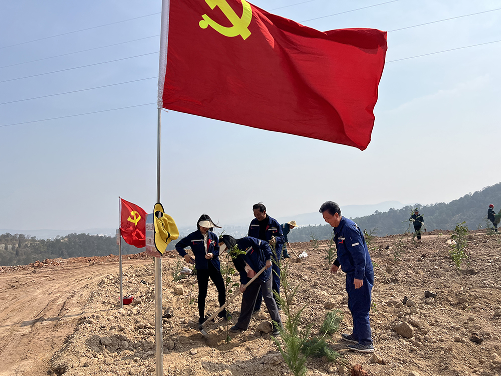 党旗飘扬赋予红色指引植树活动促进绿色矿山之路——云南祥丰实业集团党建联盟植树活动