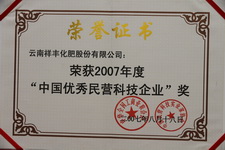 2007年度"中国优秀民营科技企业"奖