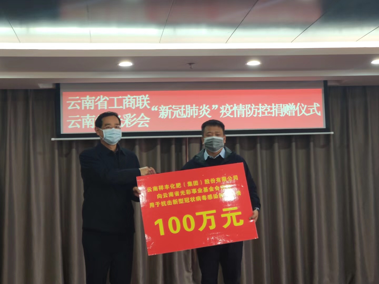 今年1月,湖北省武汉市等多个地区发生新型冠状病毒感染肺炎疫情,公司迅速筹集160万元资金和价值40万元的医用口罩,共200万元通过安宁市红十字会和安宁市光彩事业促进会进行捐赠,驰援抗击新型冠状病毒肺炎前线。公司董事长杨宗祥表示,公司作为新时代成长起来的民营企业,离不开社会的支持,更重要的是要担当起回报社会的责任,要有一颗对社会感恩的心,要始终把为党为国为民分忧当作义不容辞的责任和义务。