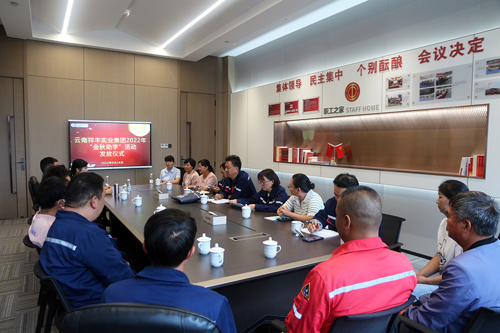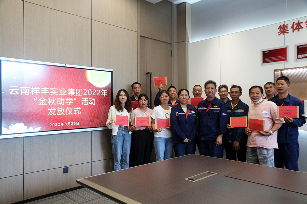 2022年8月26日,云南祥丰实业集团举行2022年度“金秋助学”活动助学金发放仪式,为2022年考上大学的16名学子的职工家庭发放了助学金,共计42000元。
