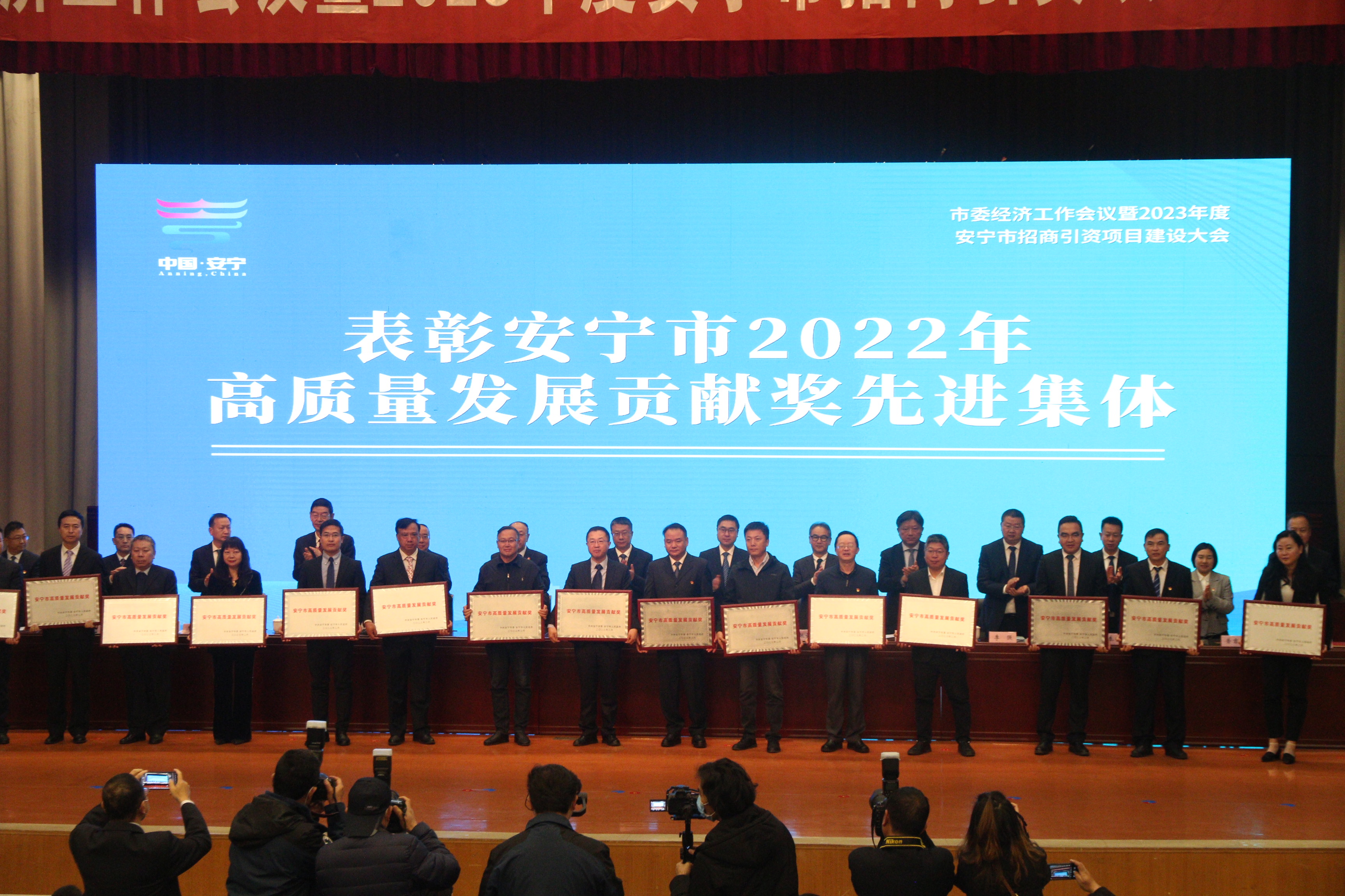 202328日,安宁市召开市委经济工作会议暨2023年度安宁市招商引资项目建设大会。为激励广大企业加快发展步伐,促进全市经济运行稳进提质,市委、市政府决定表彰50个“安宁市高质量发展贡献先进集体”、100名“安宁市高质量发展贡献奖先进个人”。jinnianhui.com及下属公司祥丰商贸有限公司、安宁市成杰物资经贸有限公司荣获“先进集体”荣誉称号。集团董事长杨利荣,总经理杨丽芬,集团副总经理李彦雄、何贵波、李星、陈如平等荣获“先进个人”荣誉称号。