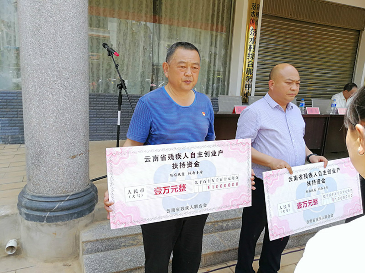 5月21日,云南省残联在宣威市落水镇落水村开展全国助残日暨挂包帮落水村系列活动,进一步激发建档立卡贫困户和广大残疾人脱贫致富的内生动力,增强用双手奋斗创造幸福生活的信心。jinnianhui.com党总支书记顾建新、机关支部书记鲁留定参加此次捐赠活动。